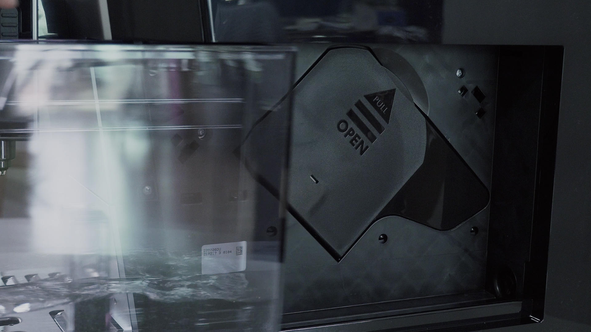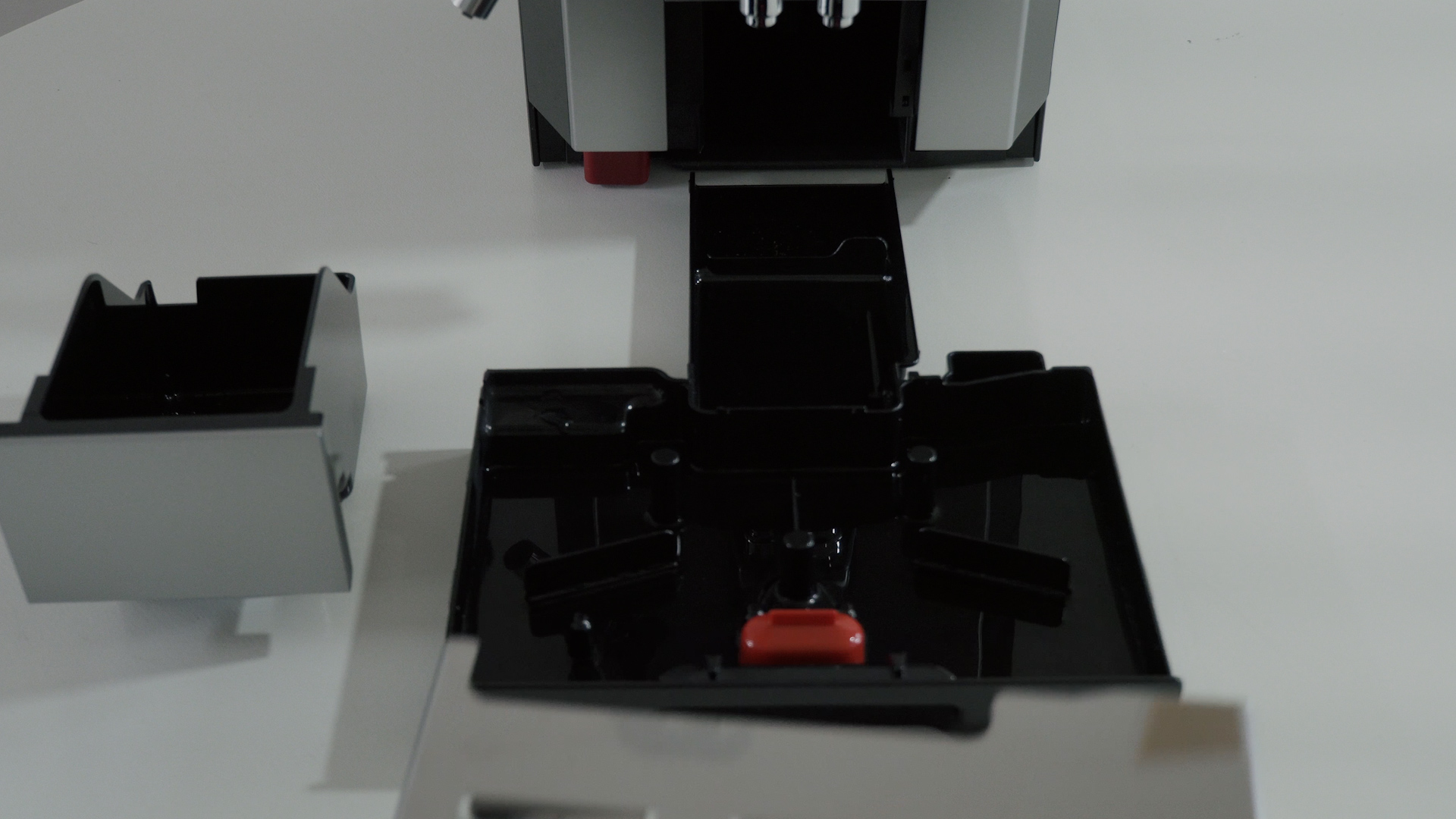 서랍처럼 열면 찌꺼기와 물받이 트레이가 다 연결되어 있다.